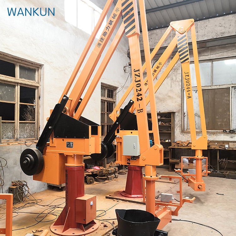 Roterende akselsete, armsete, vertikal guiding assembly, etc. Basen kan settes på en sementbase (fast) (se tabell - for base dimensjoner) eller festet på en mobil vogn (mobil). Kroppen kan rotere i området 345 grader rundt den roterende akselsete. Den vertikale guiding assembly er festet på baksiden av kroppen, og guiding wheel av den balanserte fire-link mekanisme beveger seg opp og ned guiding groove.